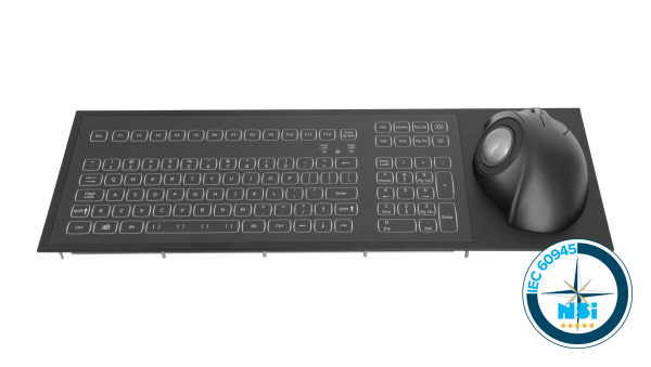 IEC60945 marine keyboard with 38 mm ergonomic trackball - panel mount